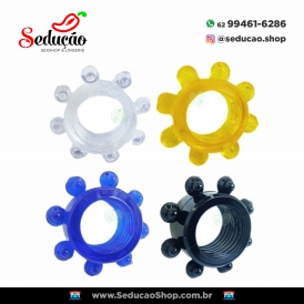 Anel peniano em silicone macio de alta qualidade, tipo Mega Stretch, ajuda a retardar a ejaculação e estimula a excitação da parceira através de cerdas macias.