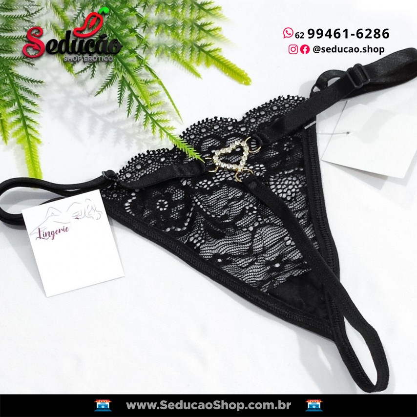 CALCINHA FIO CORAÇÃO STRASS - PRETA