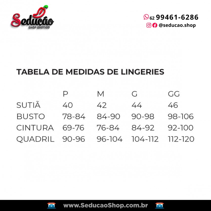 Sem dúvida alguma, este conjunto foi feito para atrair os mais ousados olhares do seu amado(a), intencionando a noite quente que está por vir, mostre toda a sua sensualidade e atitude entre quatro paredes e se surpreenda como nunca.