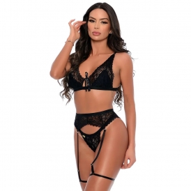 01 Sutiã, 01 calcinha e 01 par cinta liga
