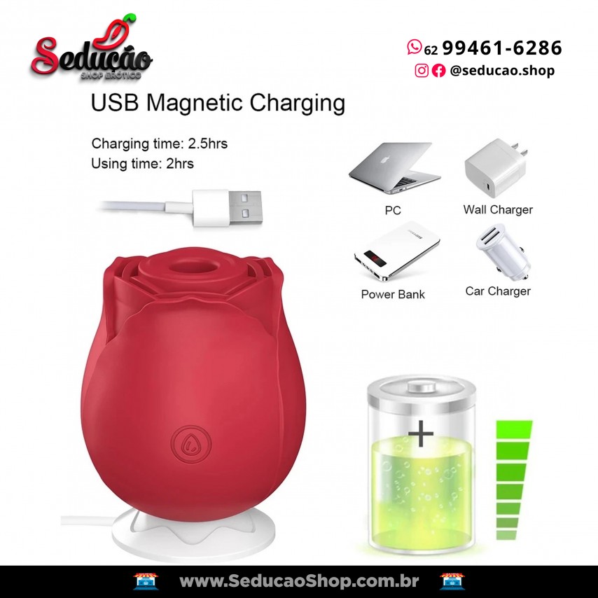 . Seu design em formato de rosa une delicadeza e potência, oferecendo estímulos intensos e envolventes para orgasmos inesquecíveis.