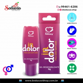 O InDolor é um dessensibilizante que auxilia na pratica do sexo anal, ajudando na diminuição dos desconfortos causados na hora da peneteração, lubrificando a região, ele possui Extrato de Aloe Vera que ajuda a hidratar e proteger os tecidos, atua como suavizante, cicatrizante e ajuda a reduzir inflamações e lesões.