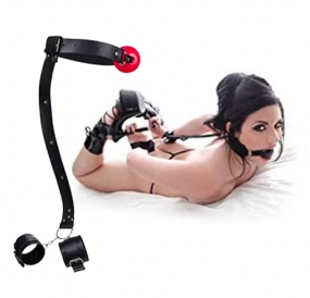 Contém uma mordaça bola e um par de algemas traseiras.