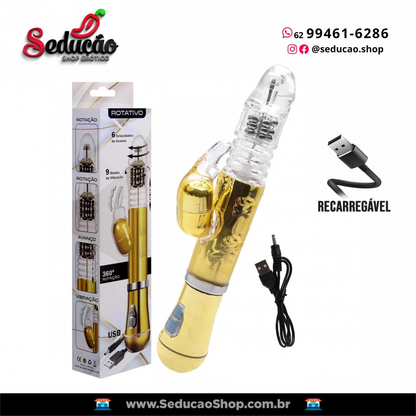 Função Rotativo + Vai e Vem + Vibração Clitóriana - USB | Sexy Import